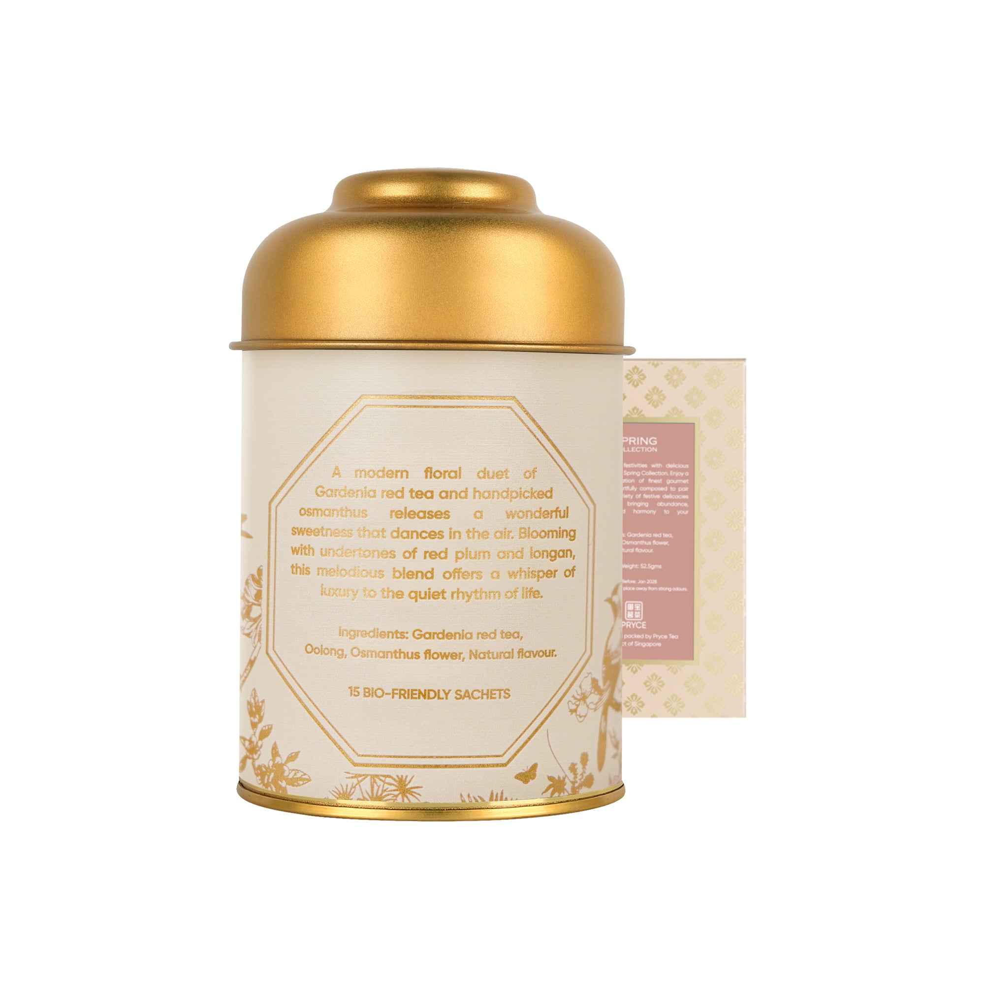 Lush and radiantly floral, this Osmanthus Gardenia tea beckons for a morning stroll through the luxuriant gardens of the Summer Palace. A modern floral duet of Gardenia red tea and handpicked osmanthus releases a wonderful sweetness that dances in the air. Blooming with undertones of red plum and longan, this melodious blend offers a whisper of luxury to the quiet rhythm of life.